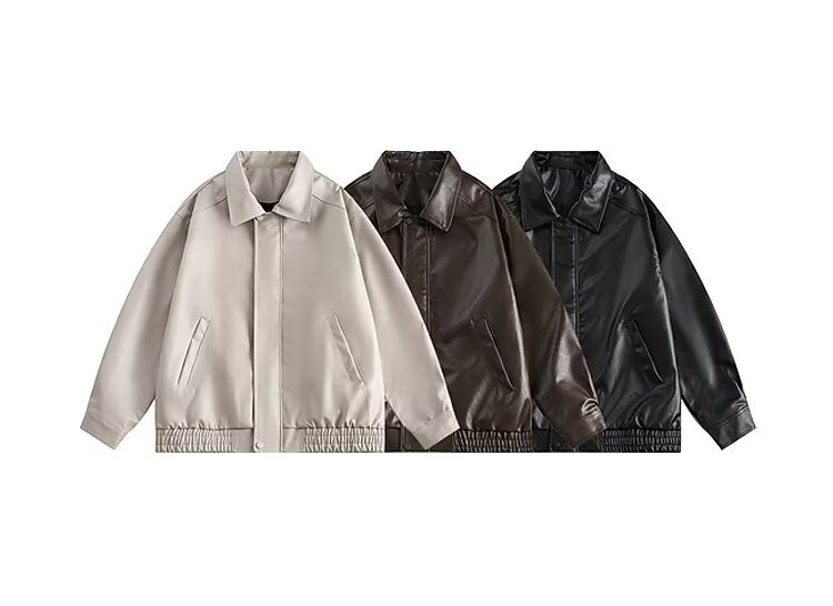 Trendy Design: Modern street-style PU leather jacket for a fashionable look.