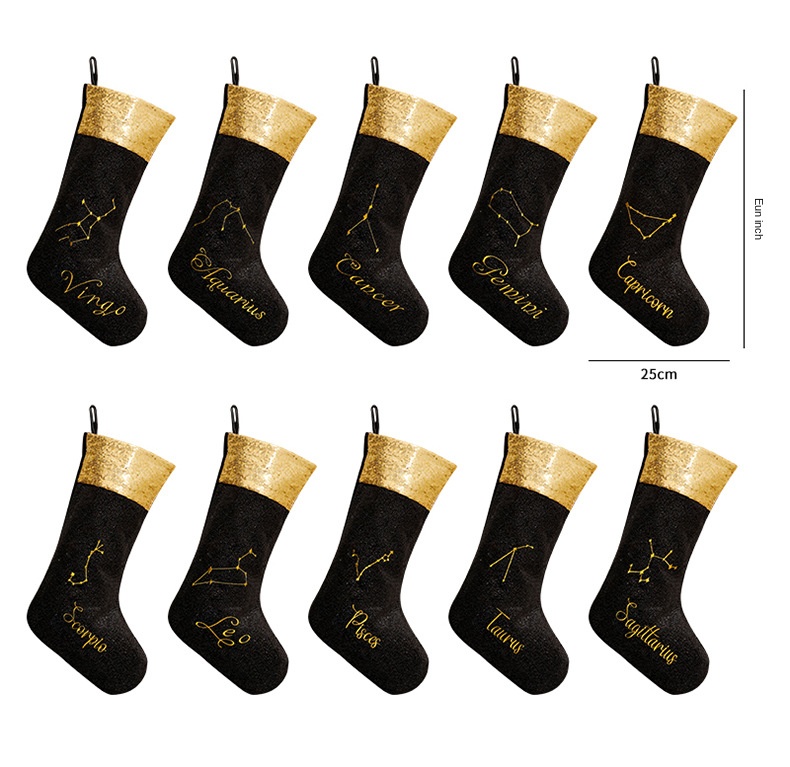 Black Zodiac Christmas Socks – Ornament Display Piece & Holiday Decoration