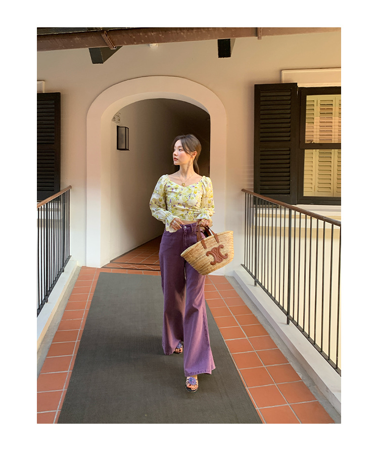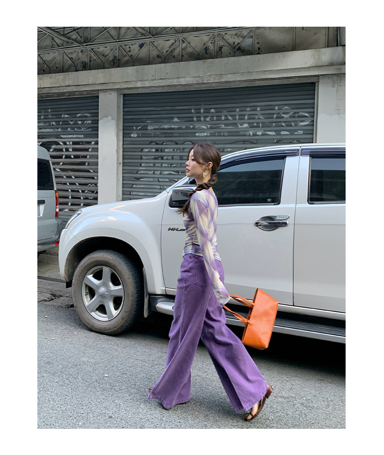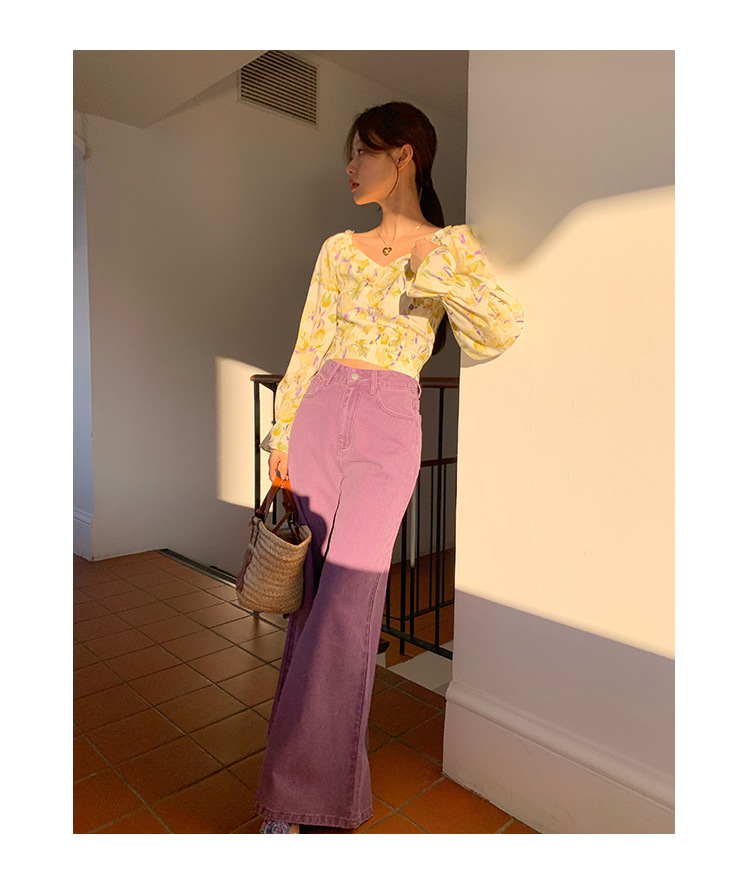 Narrow high waisted slightly flared jeans
